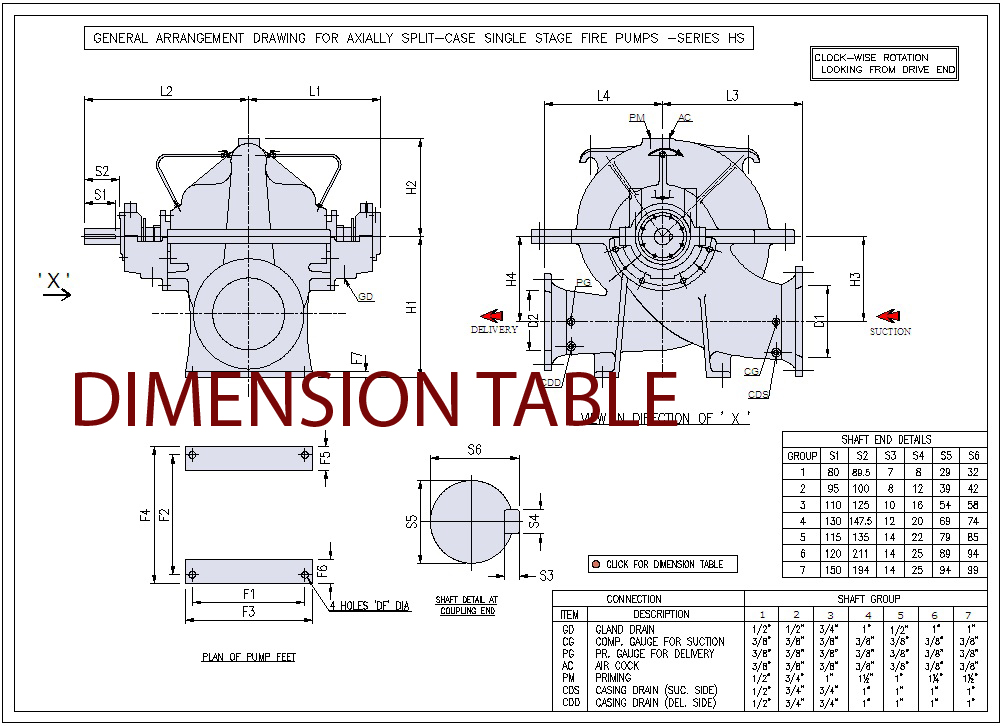 General Arrangement Drawing for Axially Split-Case Single Stage Fire Pumps - Series HS